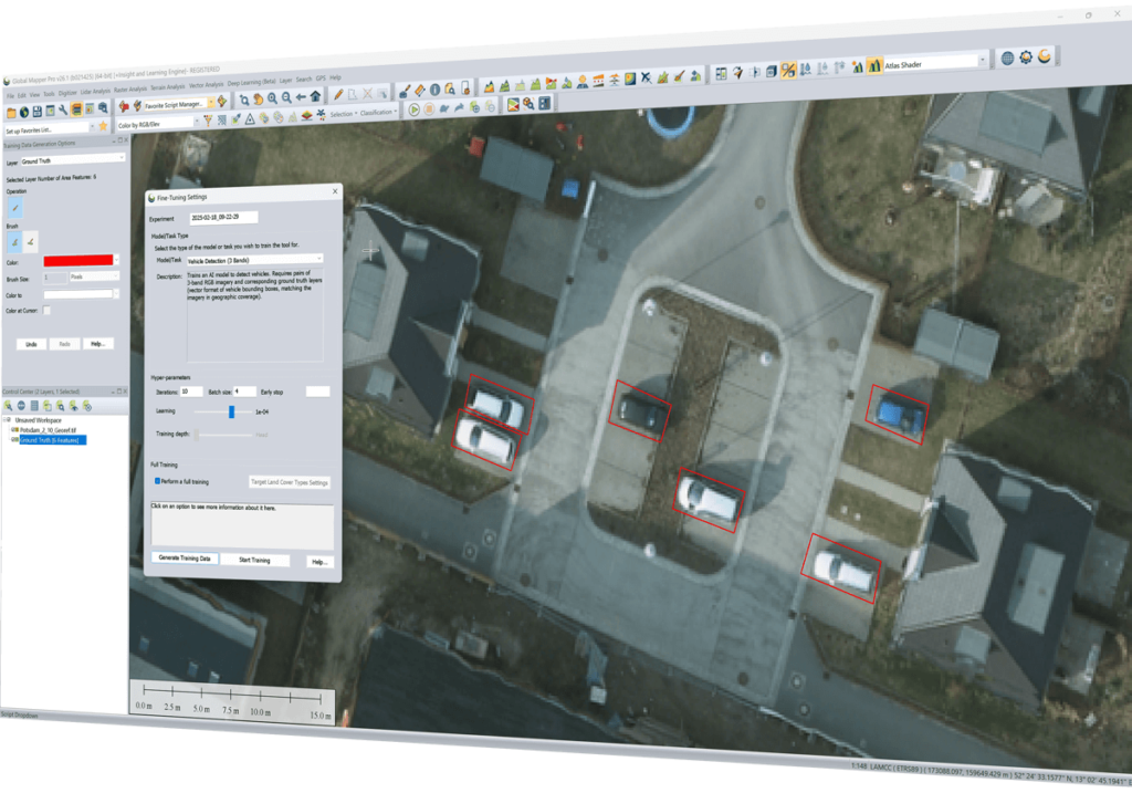 Product Manager Jeff Hatzel remarked,“The innovations in Global Mapper Pro push the boundaries of technology further. This latest update features exciting enhancements to our AI-driven tools, including expanded machine learning-based point cloud classification methods for powerlines. Moreover, we have refined the Insight and Learning Engine’s deep learning image analysis tools to include vehicle detection fine-tuning and custom model sharing.”