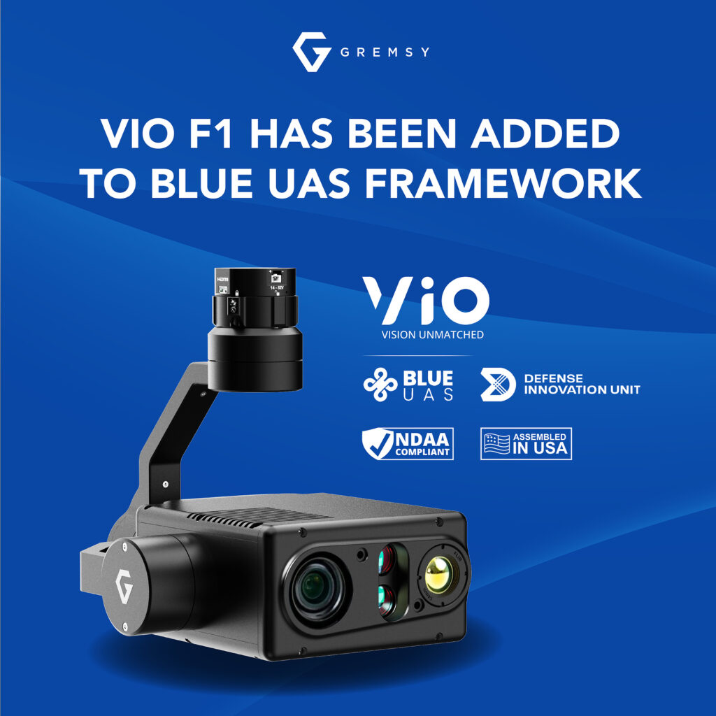 The Gremsy VIO F1, a elegant payload featuring EO/IR/LRF technology, has been officially incorporated into the Blue UAS Framework. this milestone represents a pivotal advancement in Gremsy’s commitment to delivering secure, dependable, and high-performance imaging solutions for UAVs across diverse applications.