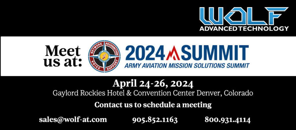 join WOLF at the Army Aviation Mission Solutions Summit from april 24-26 at the Gaylord Rockies Hotel & Convention Center in Denver, Colorado.